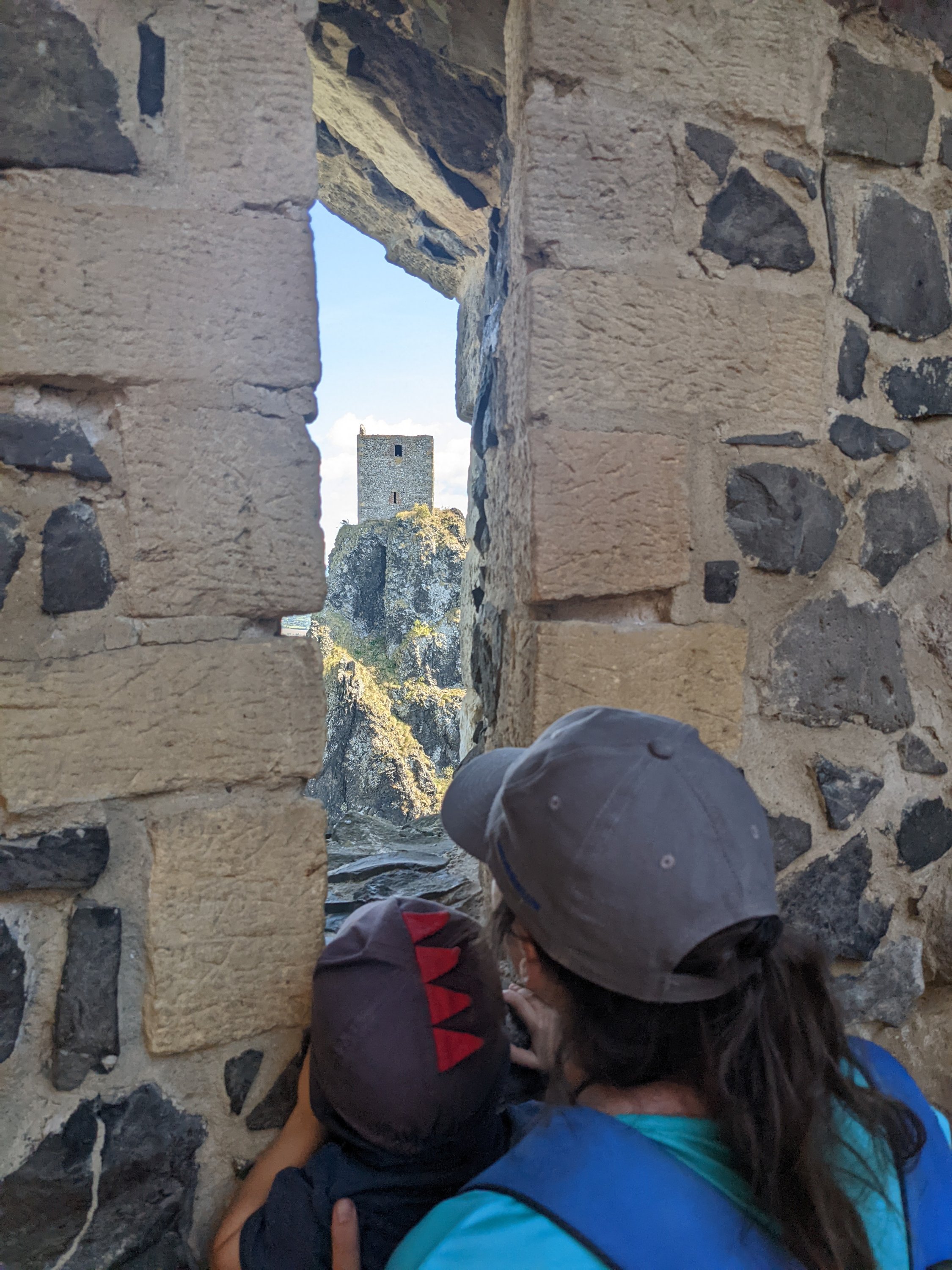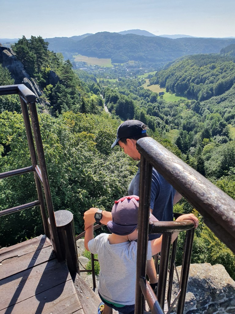 We started with a day of castles: We camped under Frýdštejn Castle and wandered up in the morning to be fortunately let in by some chap with the keys as we’d accidentally come on a day it was closed. We sprinted around the ruins and Chambers carved into the stone Eddie having an excellent time as we had no time to read any info signs. We all climbed right to the top of the tower for some awesome views before letting the poor chap lock us out and heading back to the van.