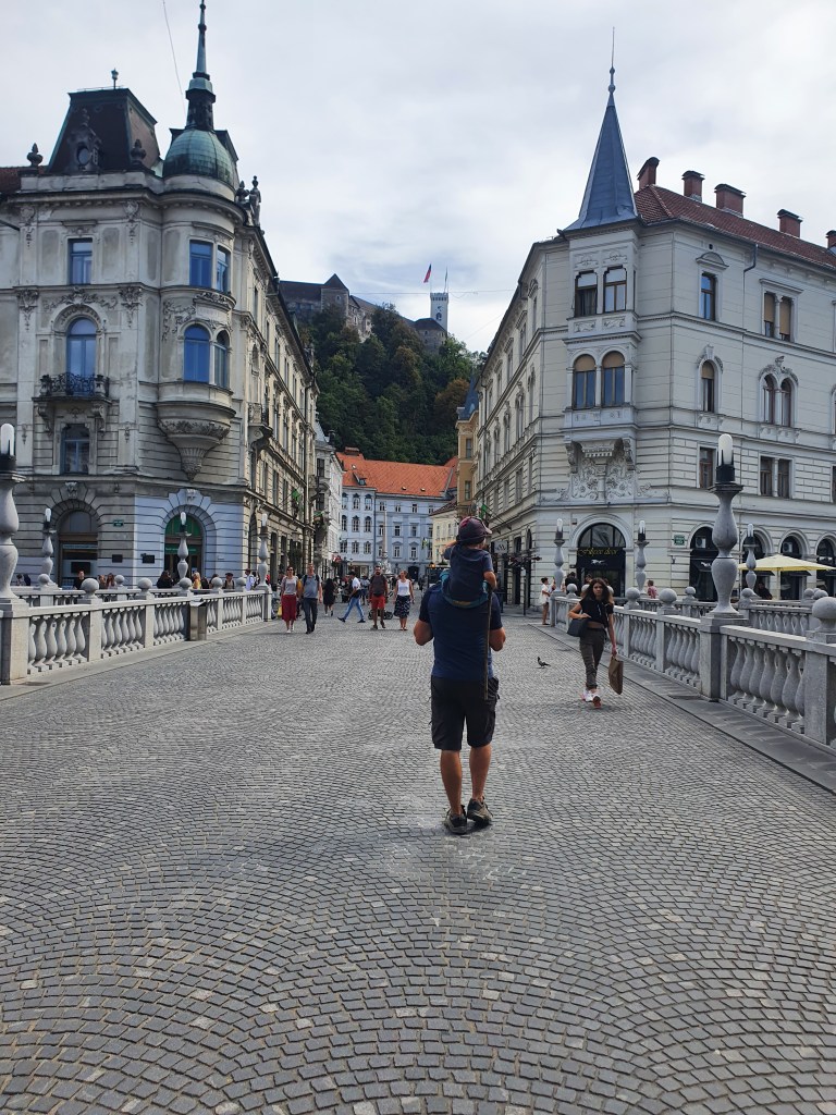 After ½ a day at the cave, time to get our culture on and go for a metropolitan city wander. Ljublijana is topped off with an impressive looking castle rising above the city, so that had to be our aim. Even better for small boys, and well all of us in the heat, there was a funicular railway to get us to the top!