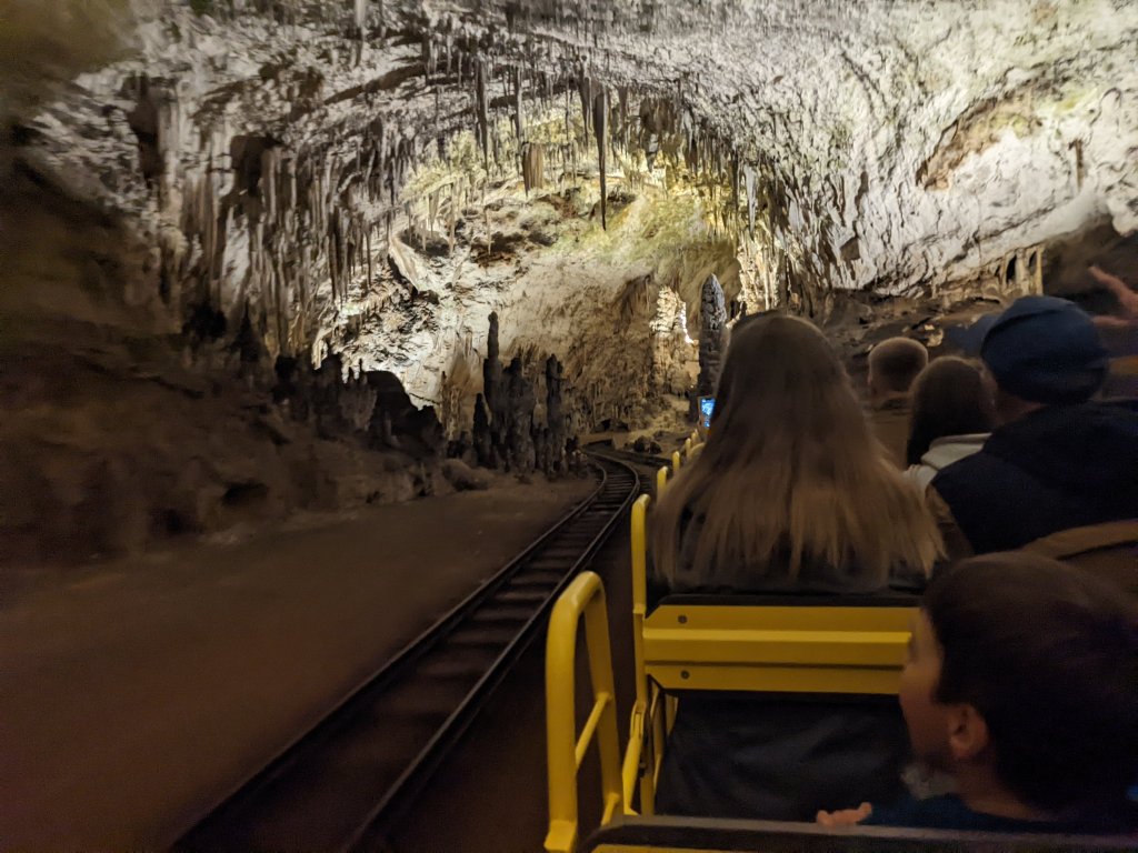 We explored the cave by train and on foot and no-one was disappointed- the place is massive, and every bit covered in calcite formations. The 3.5 km by train ride was far from just a way to get to the nice stuff- it took us through passages filled with formations including an enormous ‘dance hall’ en route, and then we were guided through 1.5km long walking tour before reaching the concert hall to get the train back to the surface.