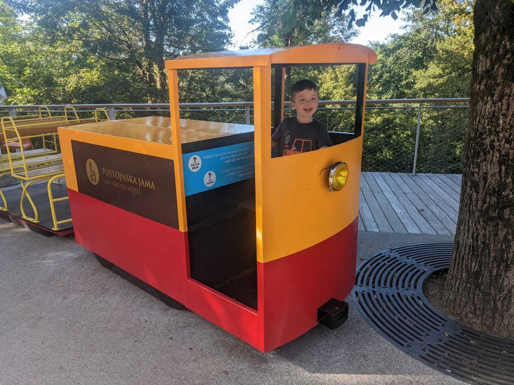 Seeing how much Eddie loved the cave with a boat trip in Czechia made us keen to go to another that would blow his mind- Postonja Jama, a show cave with a train inside. We decided it was too far off route very much not being on the way from Vienna to our next destination, Zagreb, then pretty much en route (at the thundery playpark!) changed our minds and bombed it to Slovenia to go to the cave.