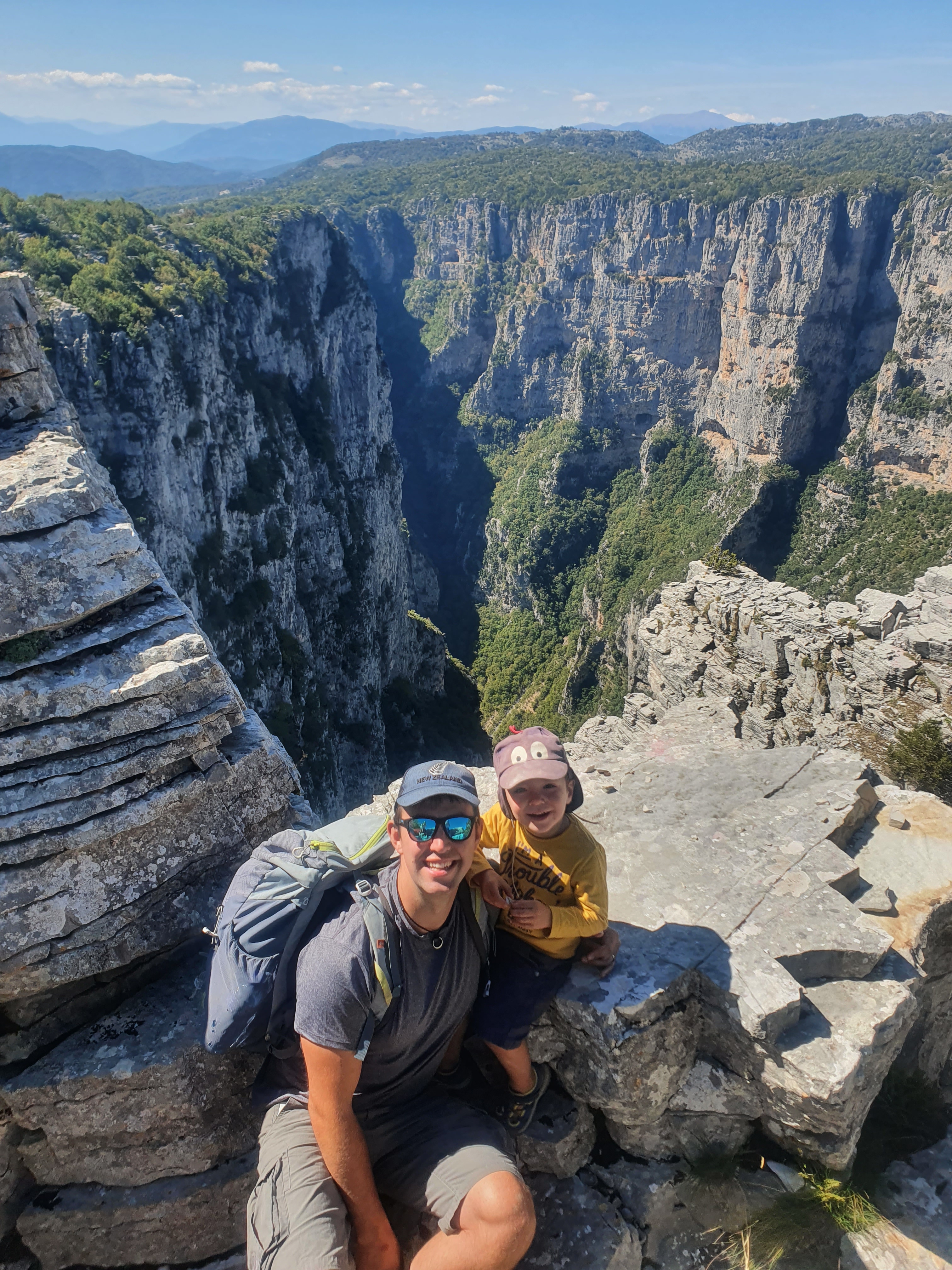 In the morning, we decided to head to the main attraction: the Vikos gorge. We wound along the roads with spectacular views to reach Vradeto with a plan to go to the Beloi viewpoint into the gorge (very happy with our decision to avoid walking the gorge itself having been told by the nice chap in the infocentre it was a good 9 hour walk with no escape routes). Best views were actually from some detours to the main route, where Eddie had a cracking time clambering onto rock stacks to try to see as far as possible into the gorge.