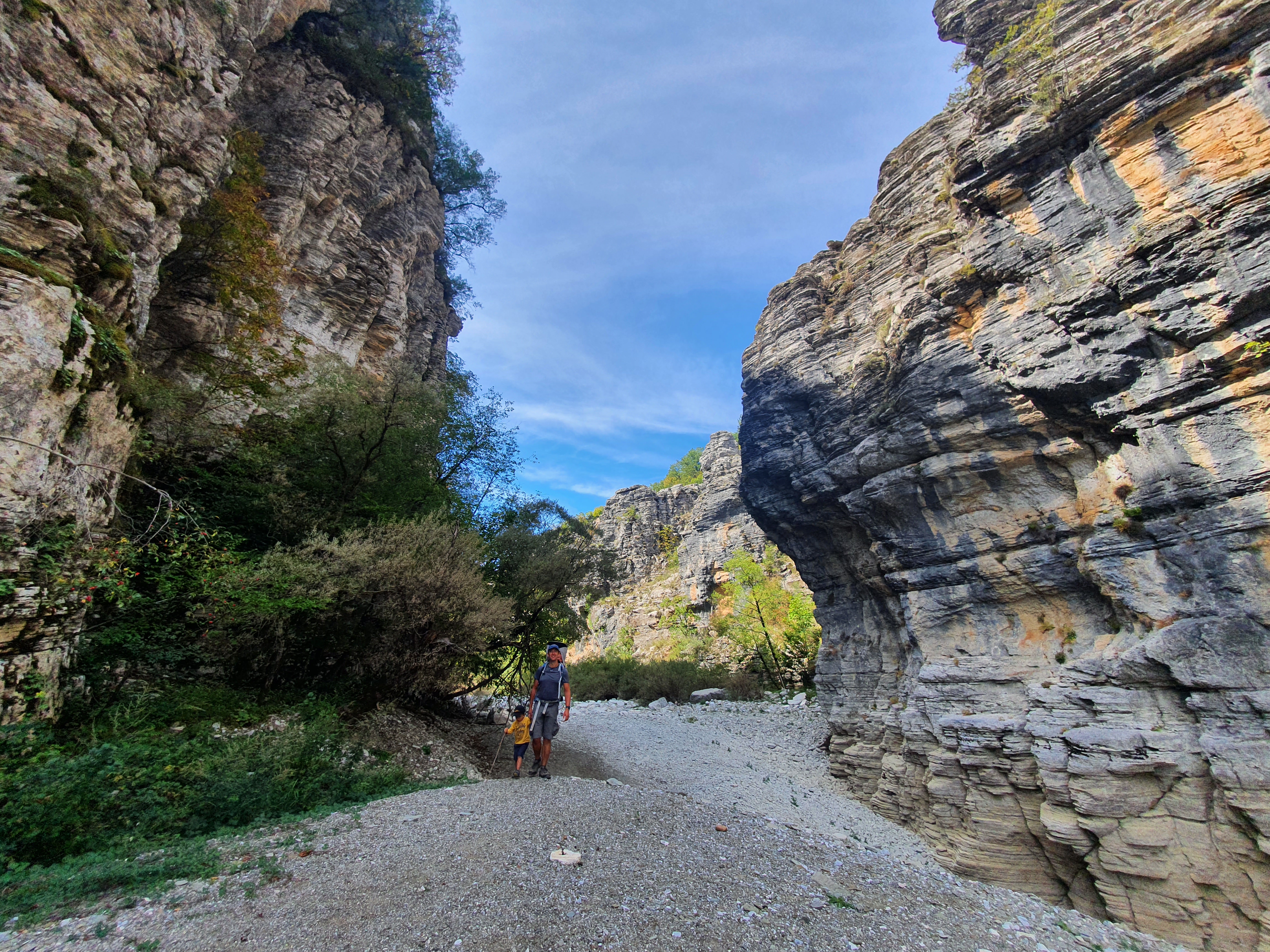 The first part was uneventful- first two bridges, Misiou and Kokkorou, found without incident and the well-singned track along the valley followed easily, albeit already taking most of an hour. The next stage was a little more interesting finding the old path had mostly collapsed and following the boulder strewn riverbed- took a while, but the views of the cliffs either side of the gorge well worth the slog!