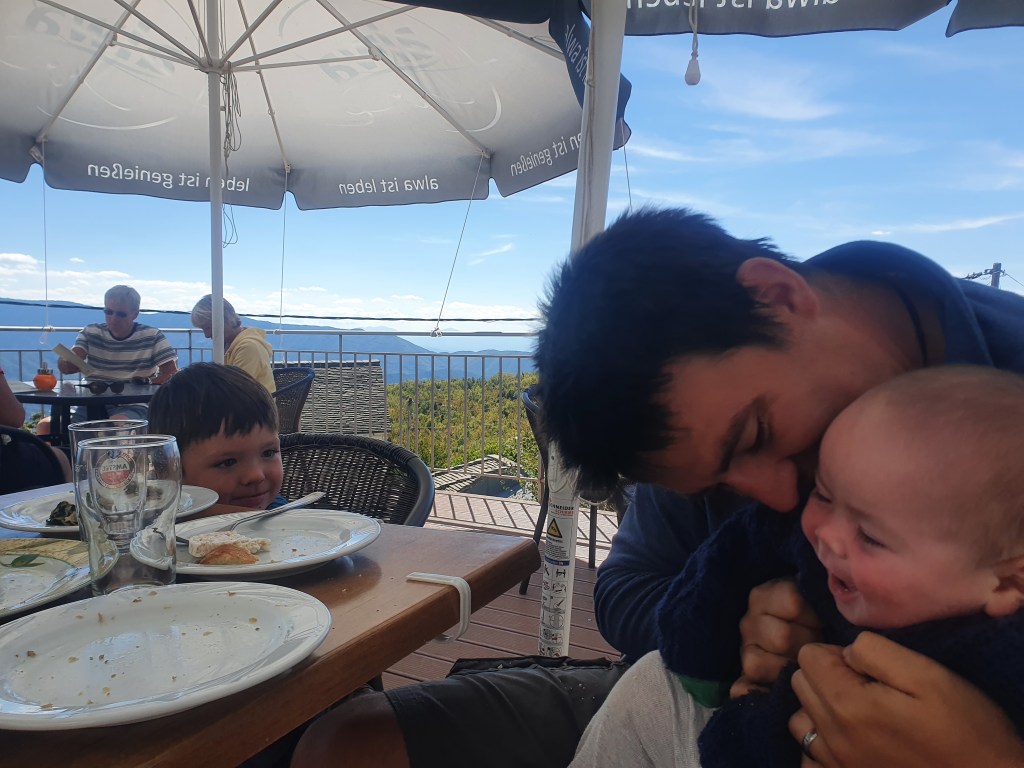 After a shock decision against snacks we headed to a playpark with amazing views of the mountains then a taverna in one of the tiny stone paved village squares within a drunken wander of a nice scenic lay-by, allowing for much drinking of wine with which Greek food is even better and leading to the realisation that a litre of wine is not that hard to consume when you’re waiting for 2 small people to finish eating!