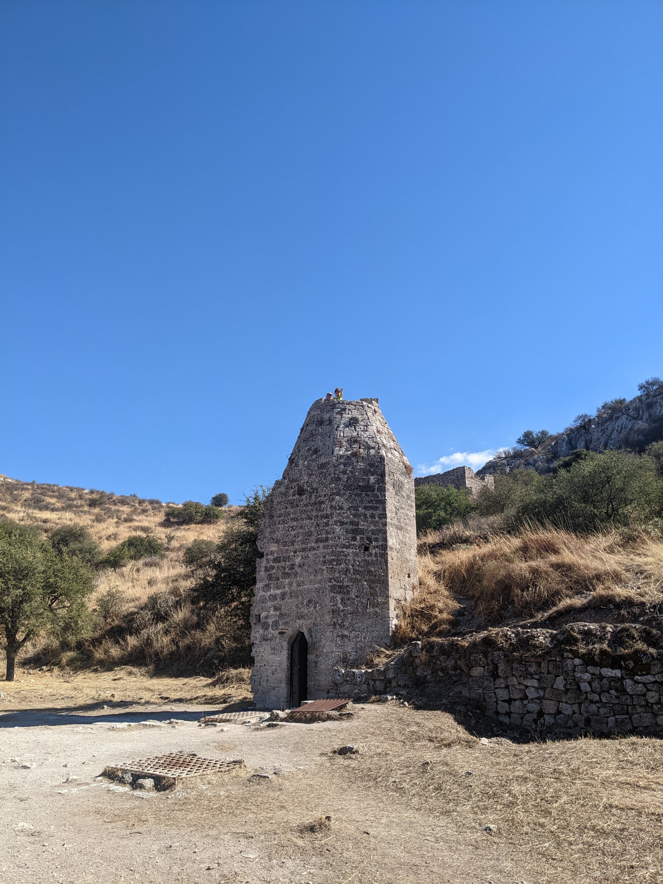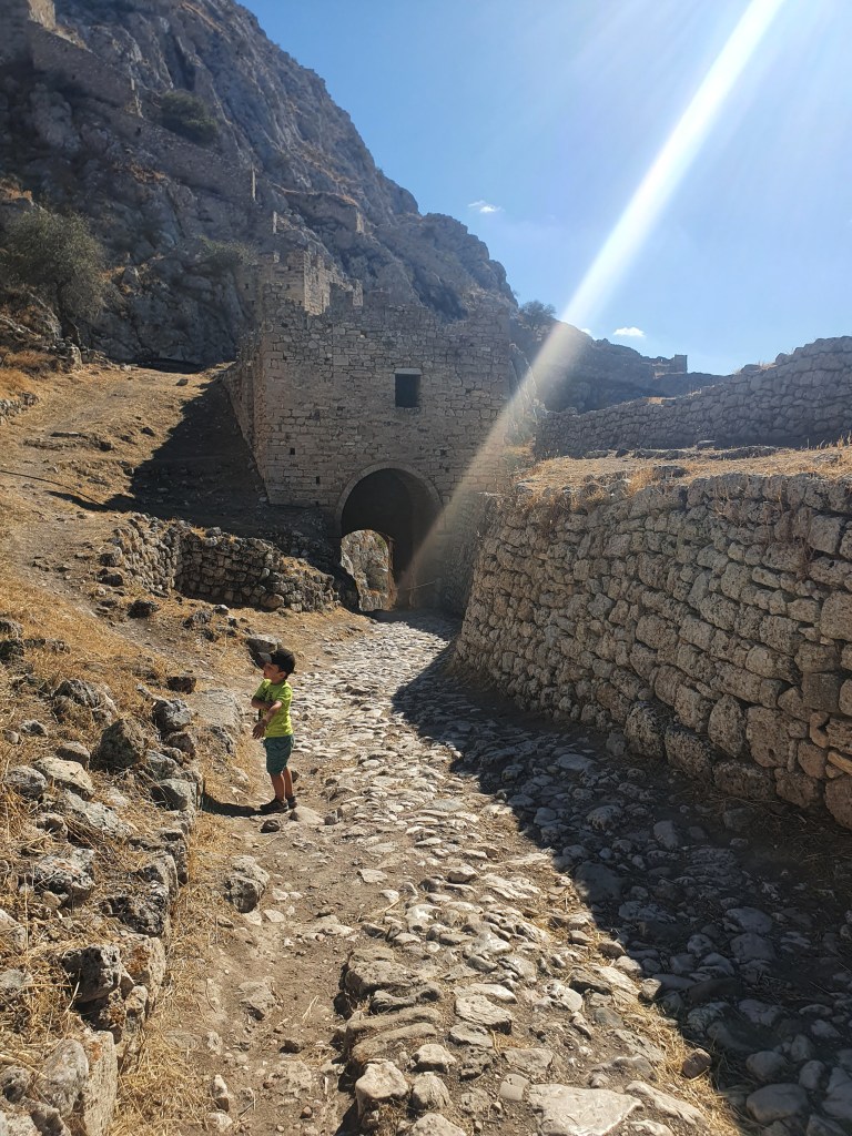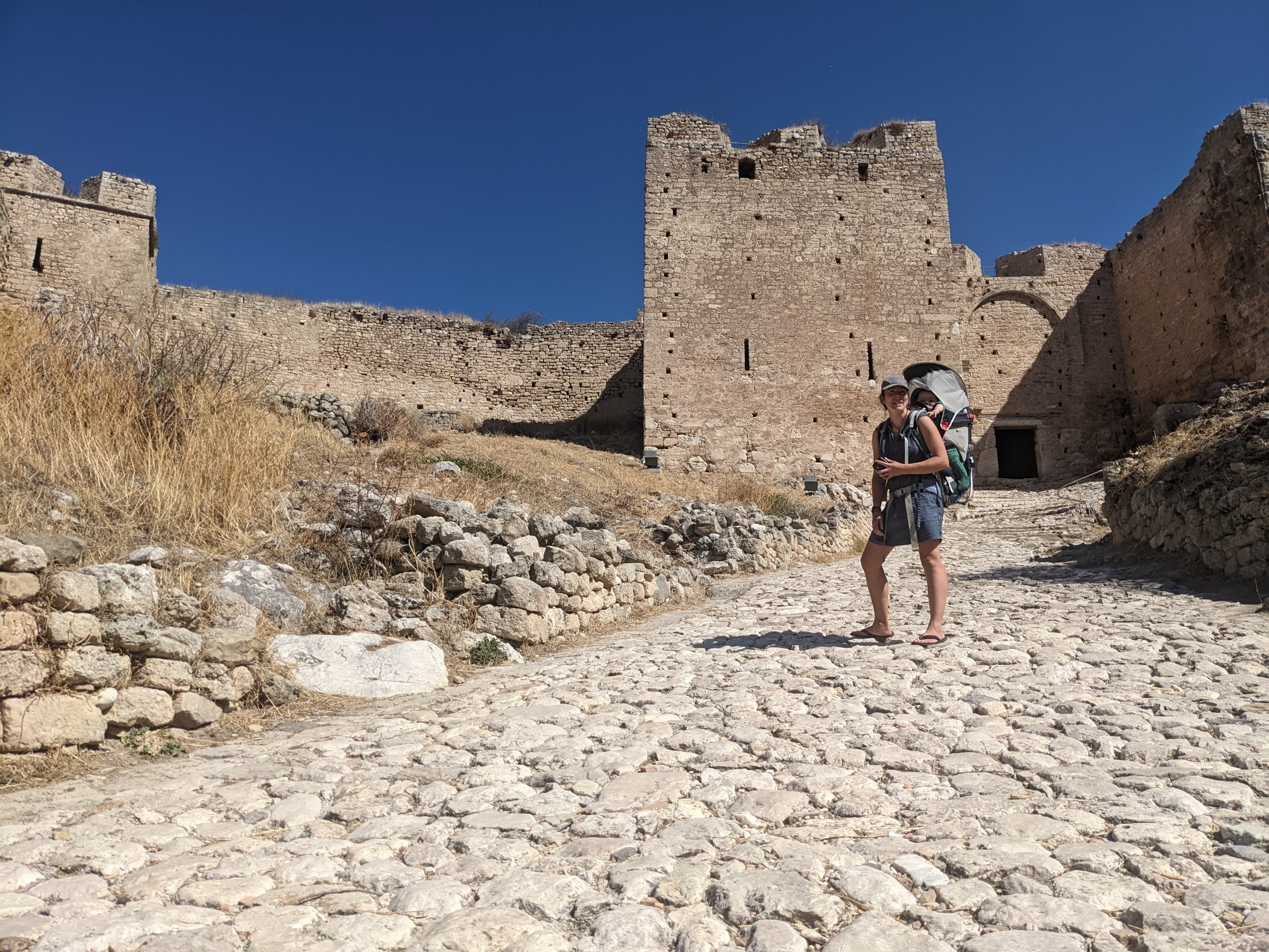 Next we headed to Acrocorinth, an enormous fortress built to protect the Peloponnese from land attacks in a place where most of the isthmus joining it to mainland Greece can be seen.