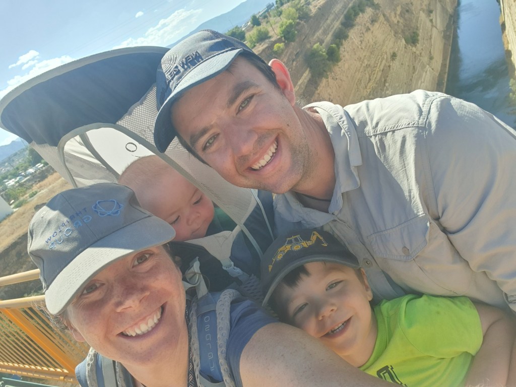 Next, to the Peloponnese! We reluctantly left our beautiful campsite outside Delphi for a pre-breakfast sprint past Athens and break for shopping and pastries before stopping at the Corinthian canal.
