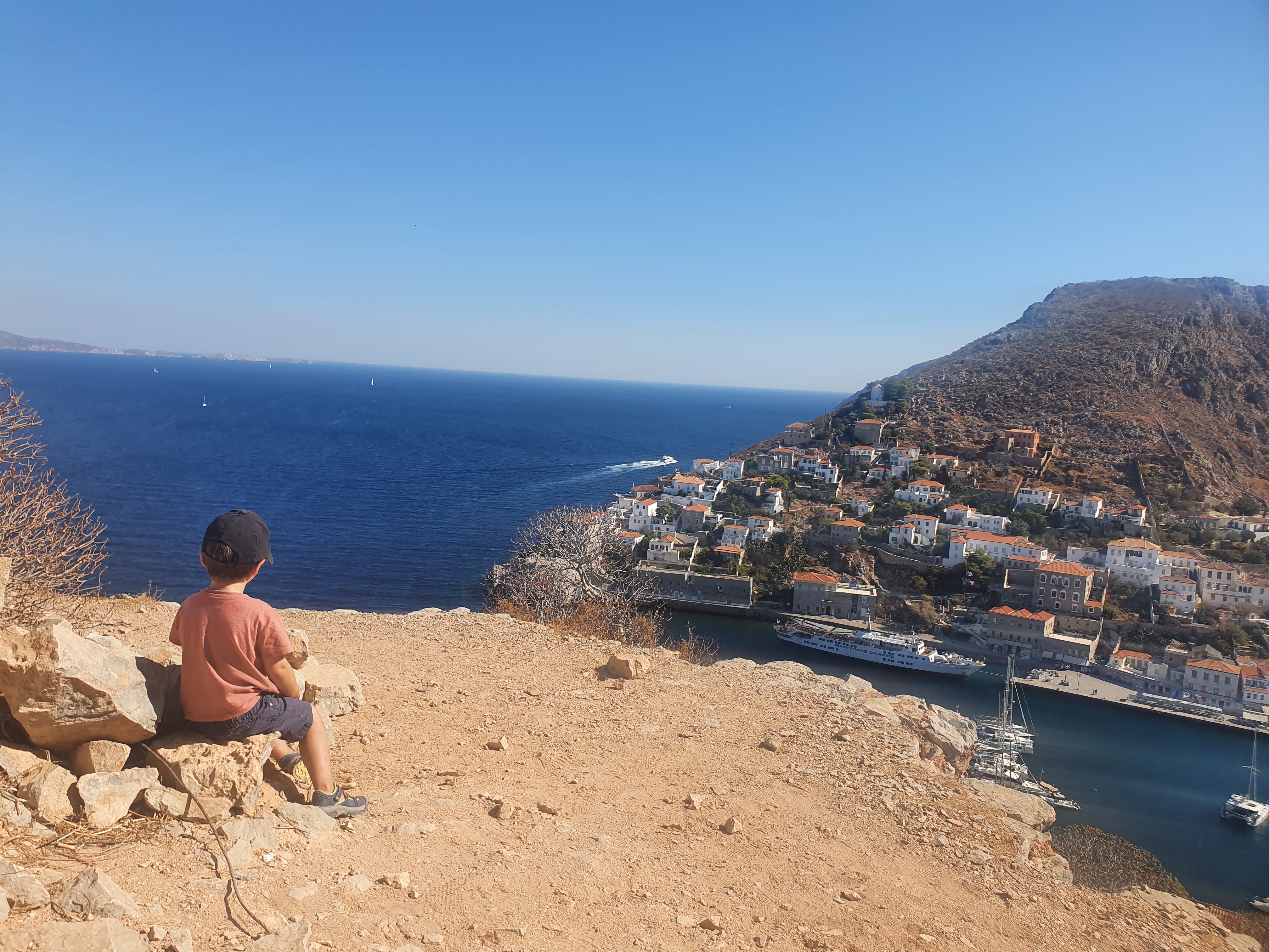 Once accomodation was secured we set our sights high, Moni Profiti Ilia sits on a peak just under the highest point on the island. Summoning the full training of the trip, Eddie tackled the climb with gusto. Route finding through the town was actually the challenging part, as maps of the wander paths between houses don’t really exist. Full credit to the postmen of Hydra, it’s steep, confusing and wiggly!