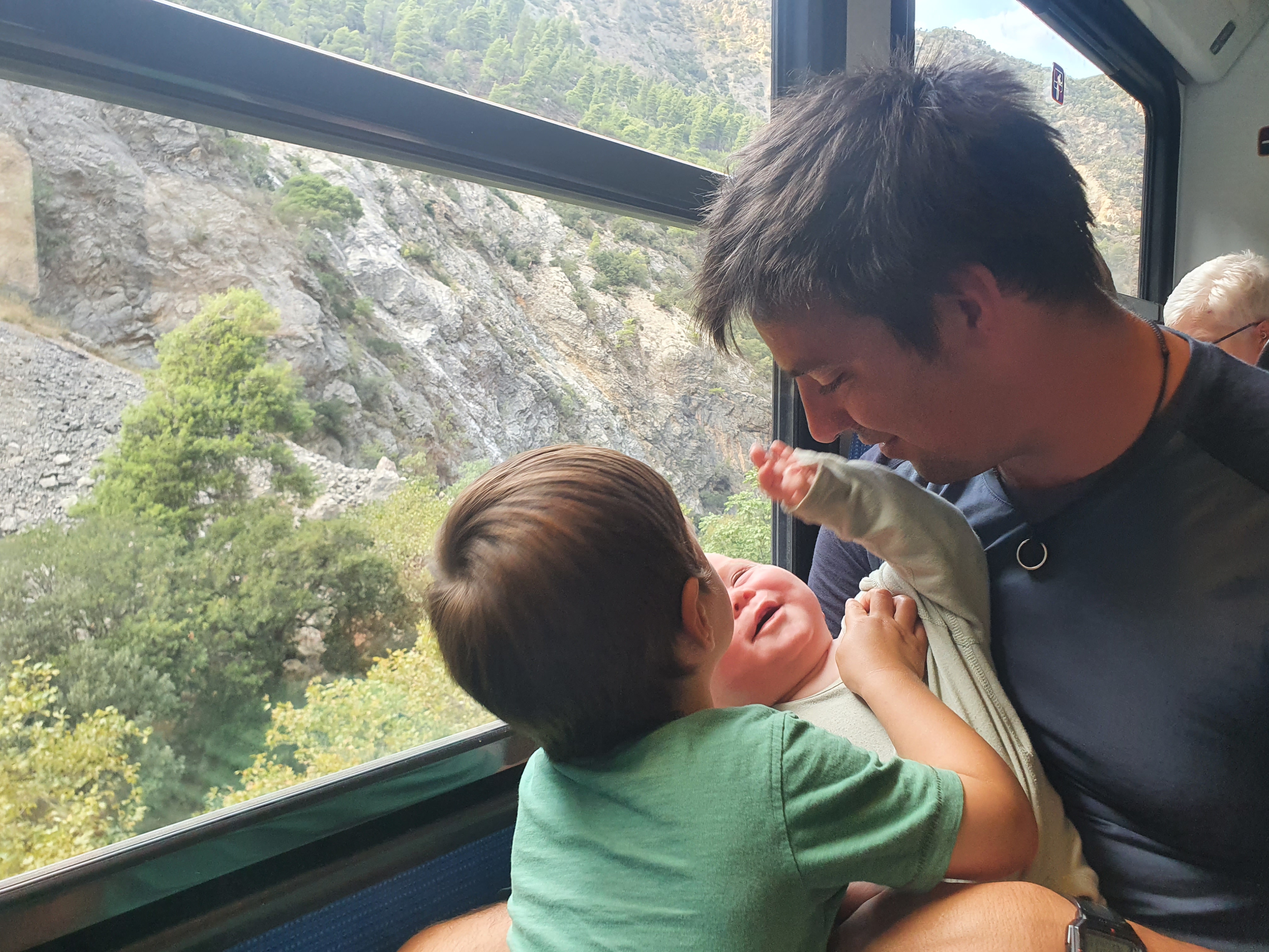 Back in town we selected a Taverna with a view of the railway for another outstanding Greek lunch. This turnout out to be handy, as with only 3 trains a day, when we’d expected to see train no. 2 arrive about as we started lunch, and it didn’t we suspected something was amiss. Turns out there was a problem with the track, so train 2 was 2 hrs late, with our booked seats on train 3 being replaced bt a bus. Trains > Buses, so we quickly changed the ticket and enjoyed our ride back down through the gorge.