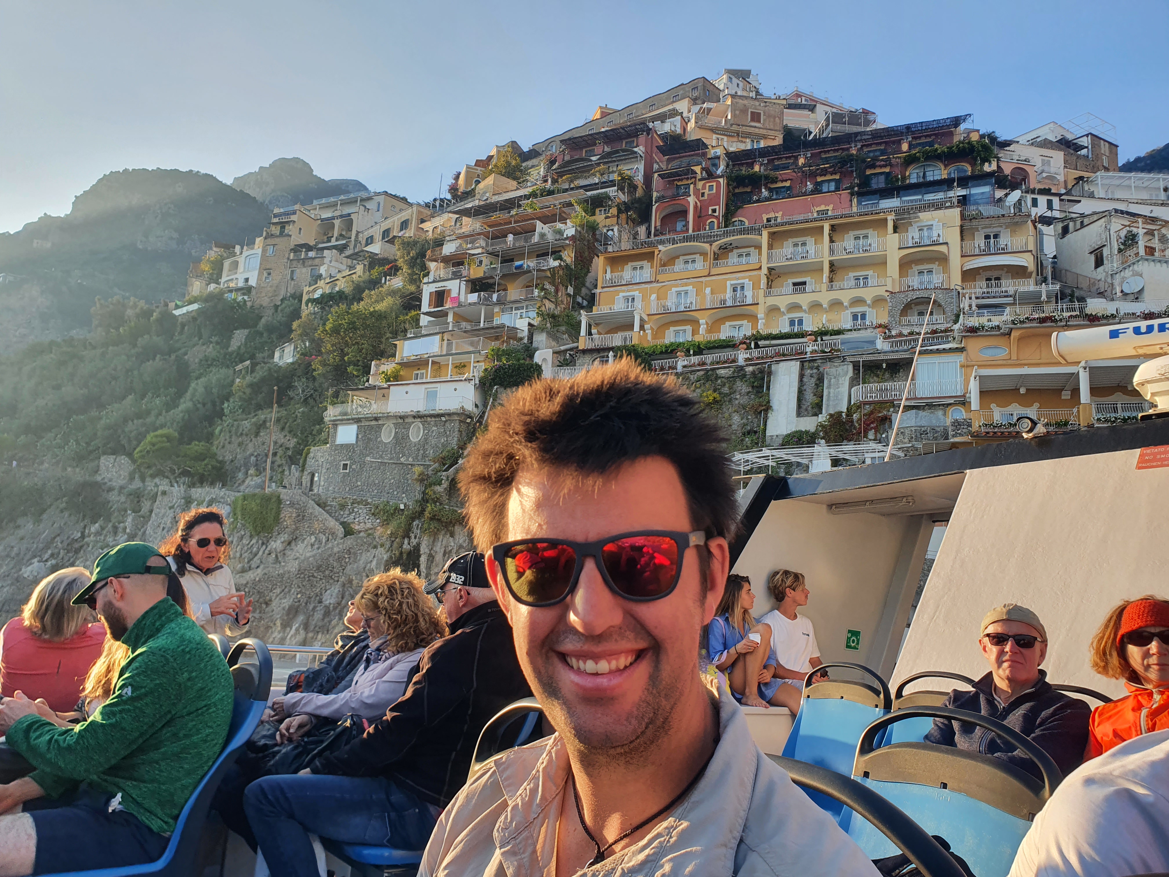 Riding the bus, I was very glad to not be driving down on the busy roads! Our eye spy game with Eddie was too much of a draw for the other Brits on the bus, we gained 3 more players who were very keen! Also on the bus were our Swiss carpark neighbours who had done the Path of the Gods walk + Descent to sea level in 1 hit. We had a nice wander back to the vans under the stars trading adventure stories & plans.