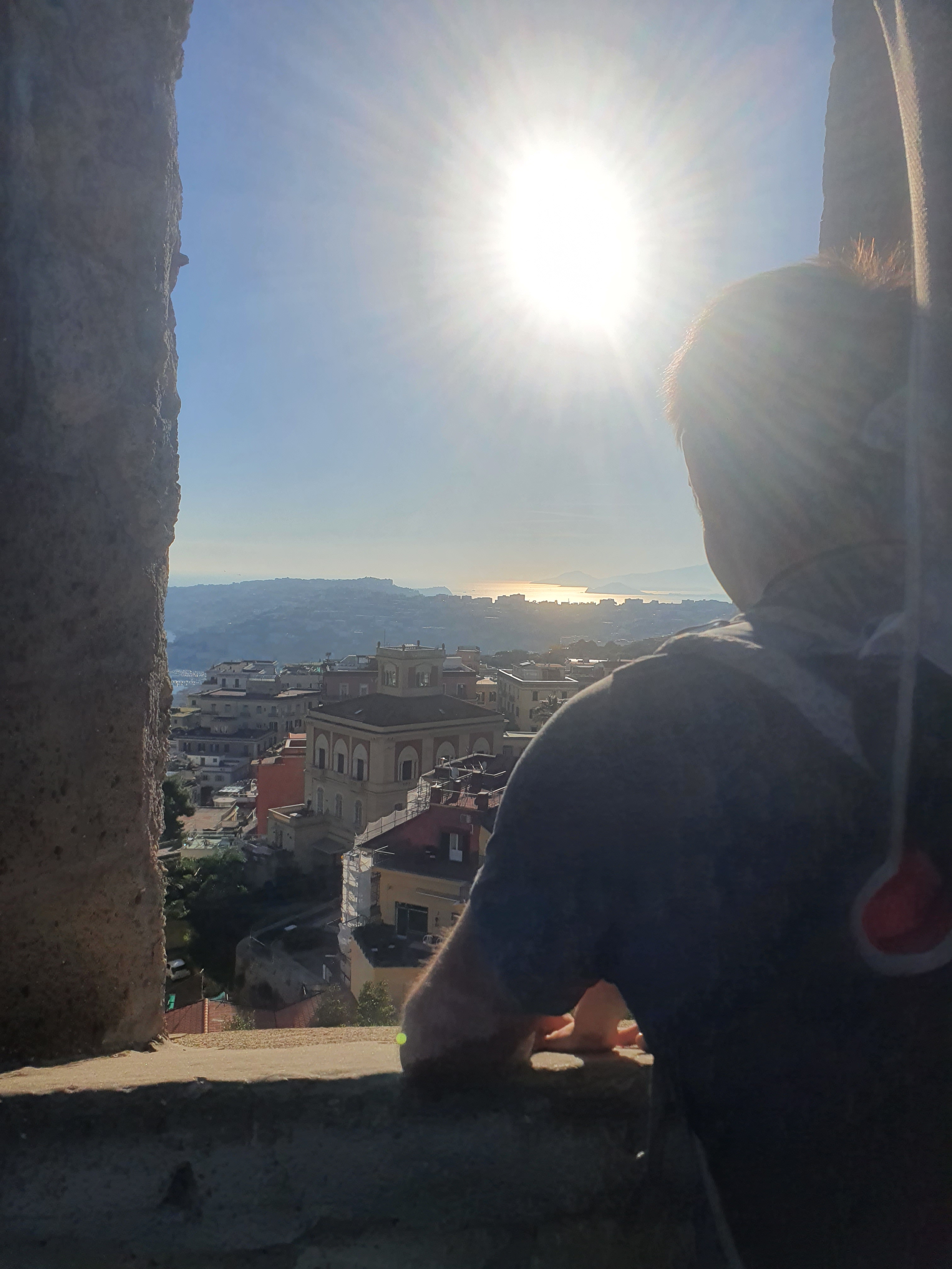 We grabbed a quick lunch in a piazza and wandered towards Vomero for more public transport excitment: turns out Naples has 4 funicular railways! We chose one to get us up the hill and headed to Castel Sant’Elmo. Apart from a very impressive entrance there wasn’t much castle to see, but you can walk around the whole perimeter of the walls with awesome views of the city.